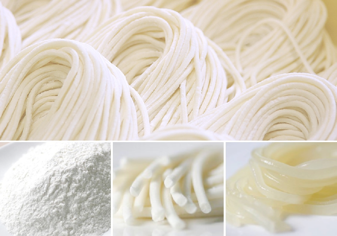 岩手県産小麦粉、北海道産馬鈴薯でんぷん、日本名水百選・岩泉の 水でつくった自家製生麺「つるしこ麺」。 つるしこの麺をゆで上げ、冷水で洗い、そのまま食べてみると、岩手 県内小麦「ゆきちから」と、じゃがいも澱粉の甘味と香り、生麺ならで はの風味が感じられます。 味、香り、コシと食感、喉ごし。麺好きの方はもちろん、これまで特に 違いを食べくらべたことのない方もつるしこの生麺だけが持つ、こ の豊かな満足感をぜひご堪能ください。